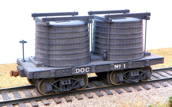 The nature of our invention consists in combining two large, light tanks of iron or wood or other material with the platform of a common railway flat freight-car, making them practically part of the car, so as they carry the desired substance in bulk instead of in barrels, casks, or other vessels or packages, as is now universally done on railway cars.